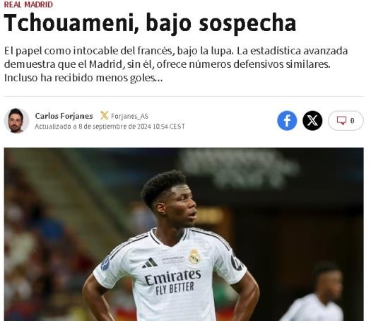 9月9日讯 皇马目前在西甲2胜2平排名西甲第二,落后榜首巴萨四分。《阿斯报》报道,数据显示琼阿梅尼上赛季的表现未能显著提升球队防守水平,但是安帅仍然对其力挺。