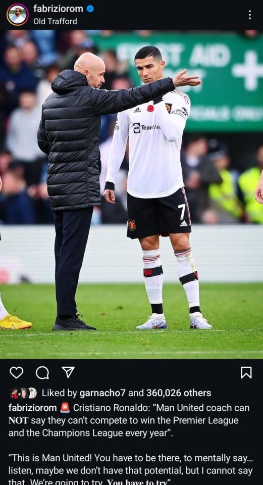 加纳乔点赞了罗马诺转发的社媒,但随后取消了点赞。