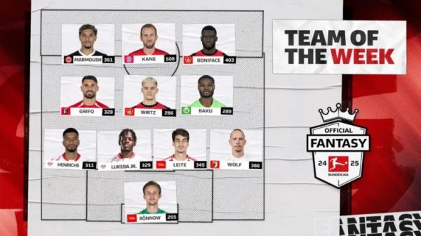 9月17日讯 德甲官方在今日评出了第3轮联赛最佳阵容,凯恩和维尔茨领衔。