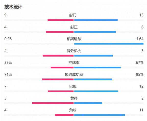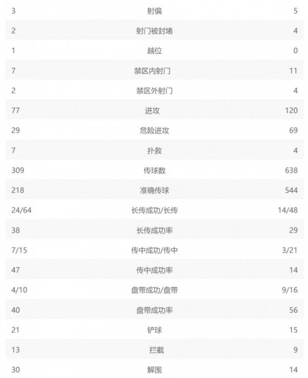 9月22日讯 曼联客场0-0战平水晶宫,双方全场数据如下↓