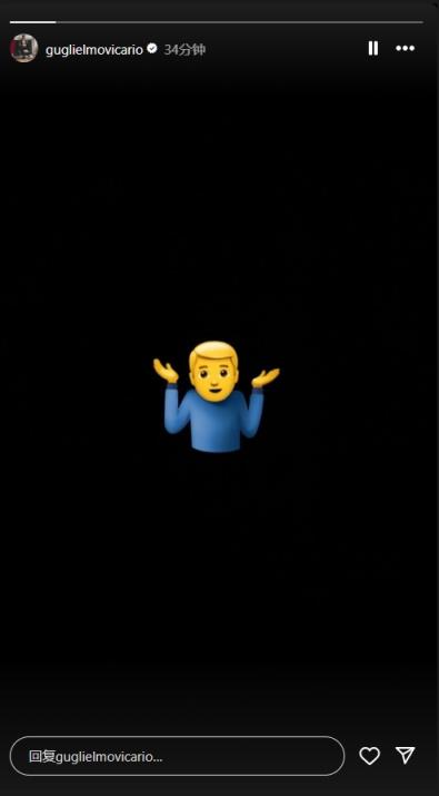 热刺门将维卡里奥也在观看本场比赛,并在中场休息时通过社媒晒出了一个“无奈摊手”的表情。