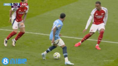 09月23日讯 英超第5轮,曼城vs阿森纳,比赛第51分钟,卡拉菲奥里绊倒萨维尼奥,奥利弗没吹边裁举旗示意犯规。