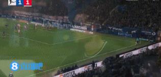 第二球,穆西亚拉被断球,之后波鸿前场制造角球,施洛特贝克头球破门。