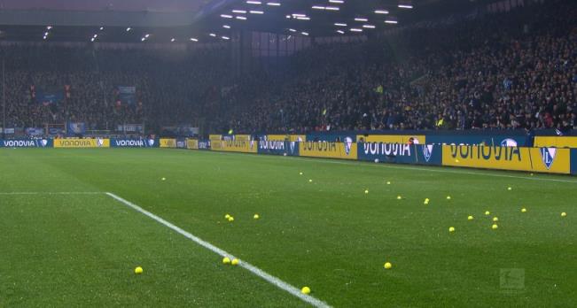 02月19日讯 拜仁vs波鸿第22分钟,球场内被球迷大量投掷杂物,比赛暂时中断了。