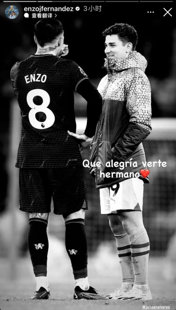 赛后,恩佐也晒出两人聊天时的照片,并写道:兄弟,见到你真的很高兴!