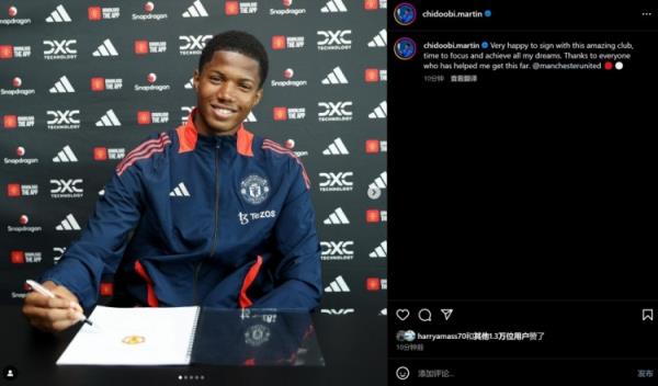 奥比-马丁写道:“非常开心能和这家了不起的俱乐部签约。是时候专注于实现我所有的梦想了。感谢所有帮助我一路走到现在的人。@曼联”