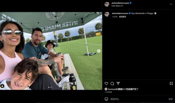 10月7日讯 梅西的妻子安东内拉更新了社交媒体,一家人来到现场观战迈阿密国际青训梯队的比赛,为大儿子蒂亚戈加油。