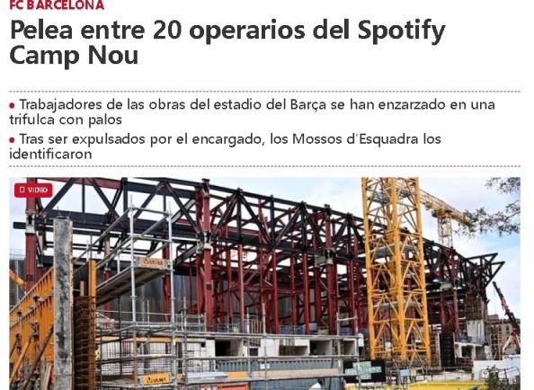 这并非诺坎普工地首次发生暴力事件。报道指出,就在今年5月23日,工地就曾爆发一起工人斗殴事件,造成3人受伤,4人被捕。