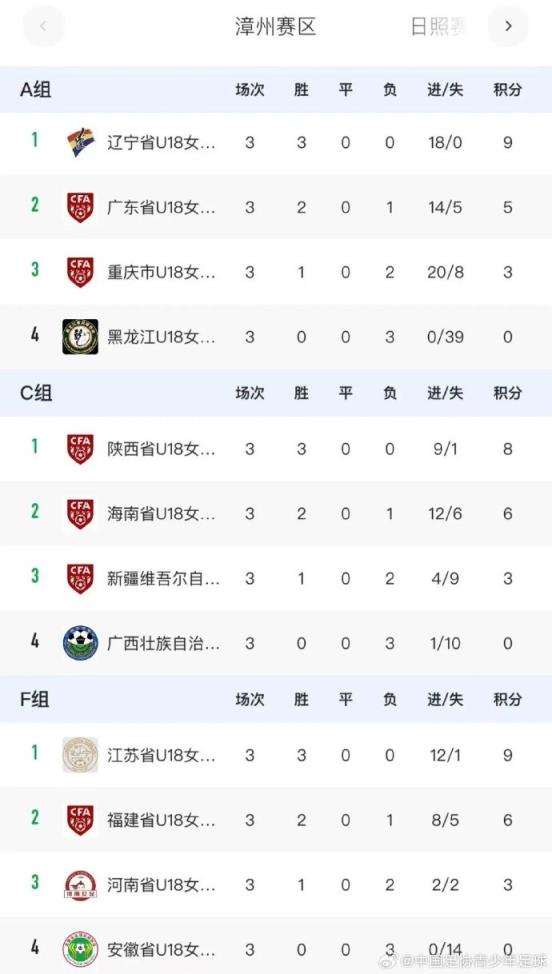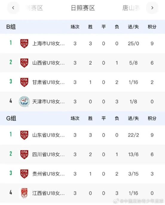 28支球队经过42场精彩较量,各小组前两名及成绩最好的第三名(A组的重庆)共15支球队晋级决赛阶段,将与东道主湖南省U18女子足球队参加11月底至12月初在湖南岳阳进行的决赛阶段比赛。晋级球队分别为: