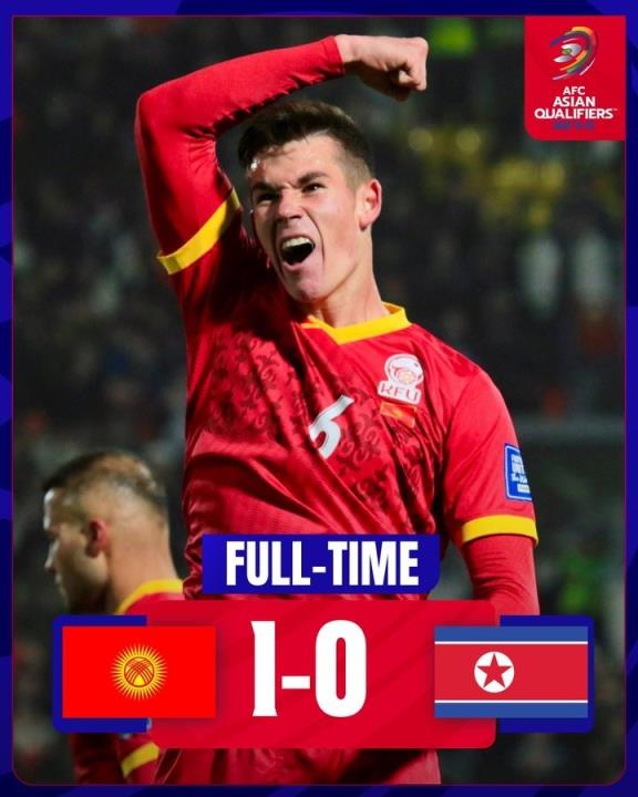 10月16日讯 世亚预18强赛A组完赛一场,吉尔吉斯斯坦坐镇主场1-0力克朝鲜。