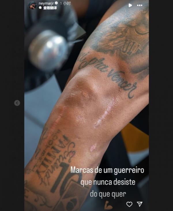 10月18日讯 利雅得新月中场内马尔在今日通过社媒晒出自己的伤疤,并鼓励自己。