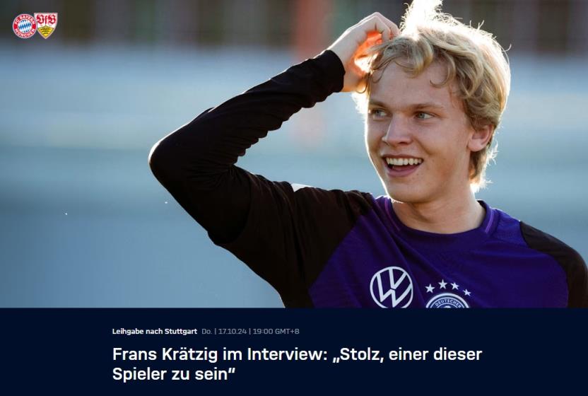 10月18日讯 21岁左后卫克雷茨格目前被拜仁外租至斯图加特,日前他接受采访谈到自己目前的情况。