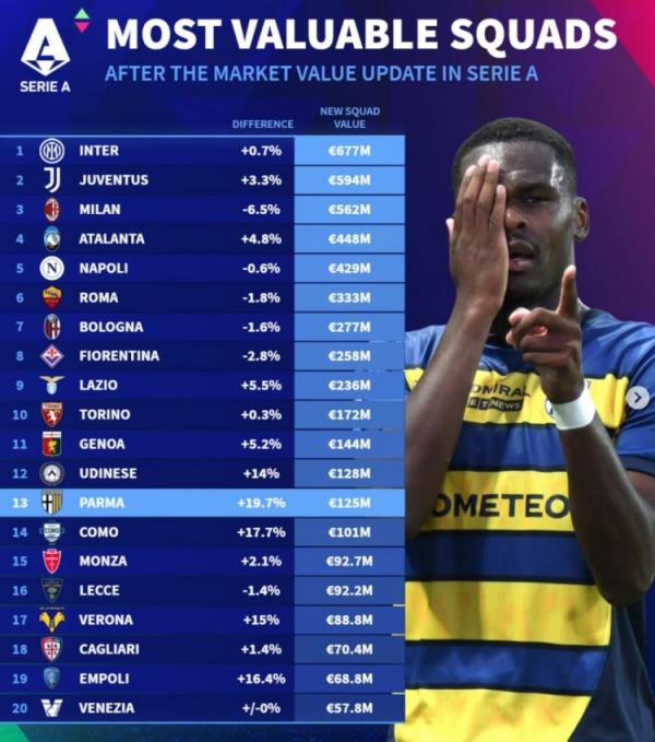 10月20日讯 《转会市场》在近日更新了意甲球员身价,并列出了最新的意甲各队身价情况,国米依然领跑。