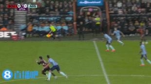 第35分钟,斯特林禁区右侧横传,第一点被伯恩茅斯球员顶下来,梅里诺禁区内得球后起脚低射,球偏出了立柱!↓