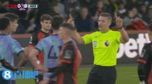 第27分钟,萨利巴后场回追时拉倒伯恩茅斯前插的球员,主裁判第一时间向萨利巴出示一张黄牌,随后VAR介入,主裁判观看视频回放后作出改判,直接向萨利巴出示红牌将其罚下!↓