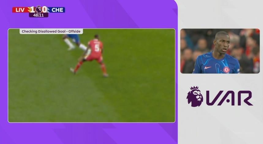 10月21日讯 英超第8轮焦点战,利物浦主场迎战切尔西,比赛第48分钟,杰克逊破门,VAR检查后确认他没有越位,切尔西1-1扳平。