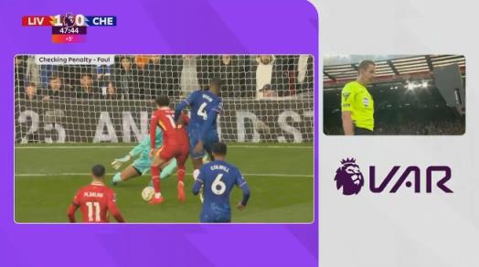 10月21日讯 英超第8轮焦点战,利物浦主场迎战切尔西,比赛补时阶段,桑切斯出击放倒琼斯,裁判判点球。VAR介入,主裁判取消点球。