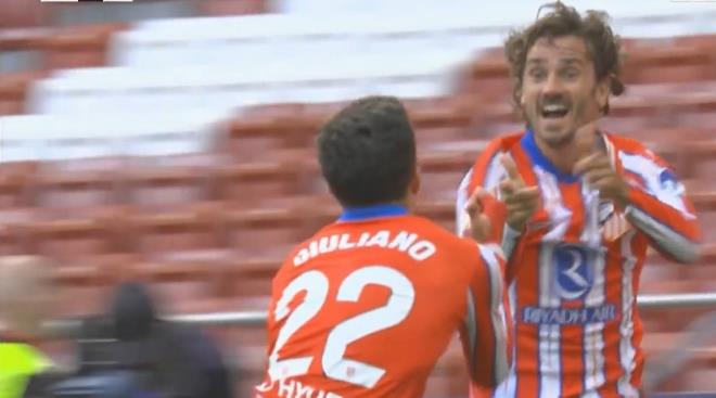 第81分钟,朱利亚诺-西蒙尼(主教练西蒙尼的三儿子)在边线极限救球成功后横传,格列兹曼飞身垫射将球打进,马竞2-1反超。