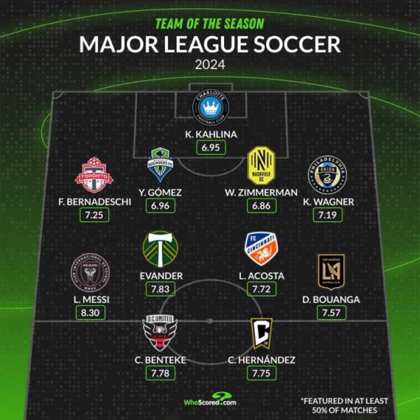 10月22日讯 美职联常规赛已经结束,whoscored也根据场均评分列出了本赛季最佳阵容,梅西无悬念领衔。