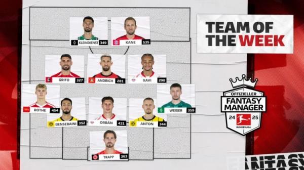 后卫:本塞拜尼(多特)、奥尔班(莱比锡)、安东(多特)