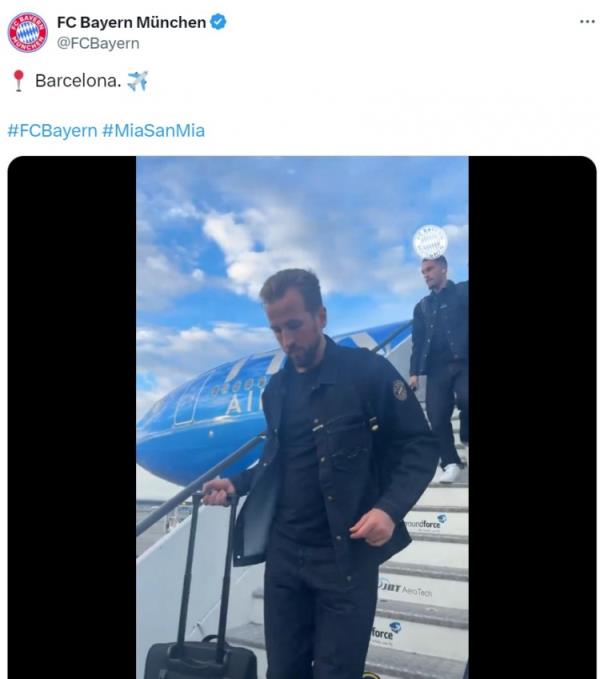 拜仁官推晒出了全队飞抵巴塞罗那后的动态,凯恩等球员提着行李箱走下飞机,官推也配文道:“巴塞罗那 ”。两队比赛将于北京时间明日凌晨3:00开赛。