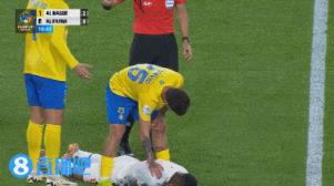 02月22日讯 亚冠1/8决赛次回合,利雅得胜利主场对阵费哈。第19分钟,奥塔维奥肘击被马宁出示黄牌,C罗上前与马宁交流,同时回放给到之前C罗带球倒在禁区。