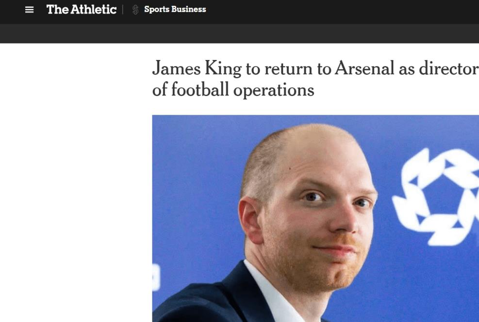 10月25日讯 据《TheAthletic》报道,阿森纳即将任命詹姆斯-金(James King)为足球运营主管。2022年,詹姆斯-金离开阿森纳前往PFA(职业球员工会)任职,看起来他选择了回归枪手。