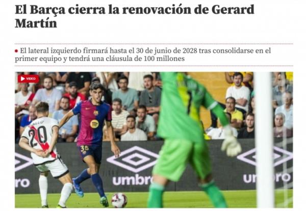 10月25日讯 22岁左后卫杰拉德-马丁和巴萨的合同将在本赛季结束后到期,据《世界体育报》报道,双方已经达成协议,马丁即将和巴萨续约至2028年,新合同中还将包含价值1亿欧的解约金条款。