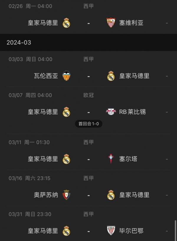 皇马接下来的赛程↓