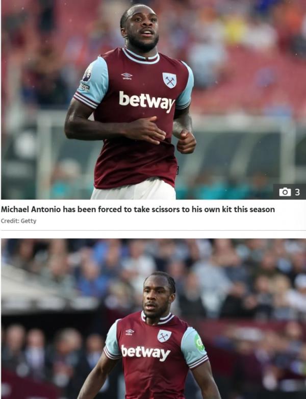 安东尼奥脖子粗壮,而西汉姆的新款球衣圆领设计很高,这也让令他抱怨自己的脖子好像被掐住了一样。安东尼奥甚至自己动手,用剪刀给领口剪了一条缝。