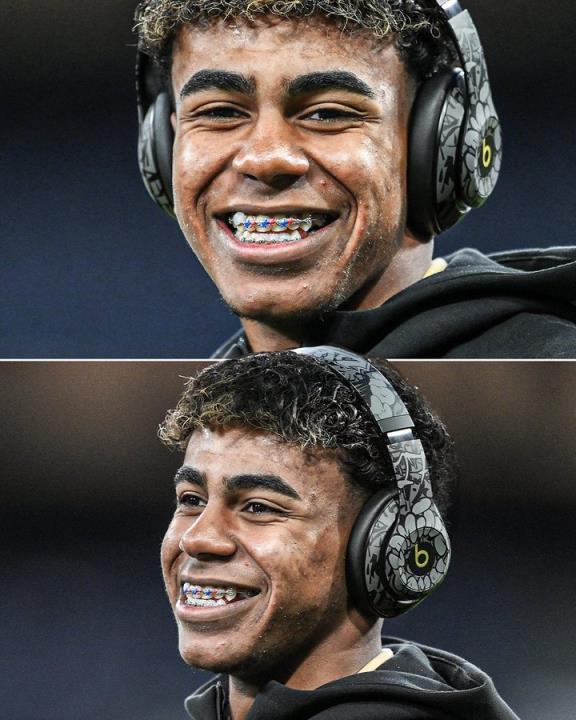 而在赛前踩场环节,摄影师拍到了亚马尔所戴的牙套也采用了巴萨经典的红蓝配色。