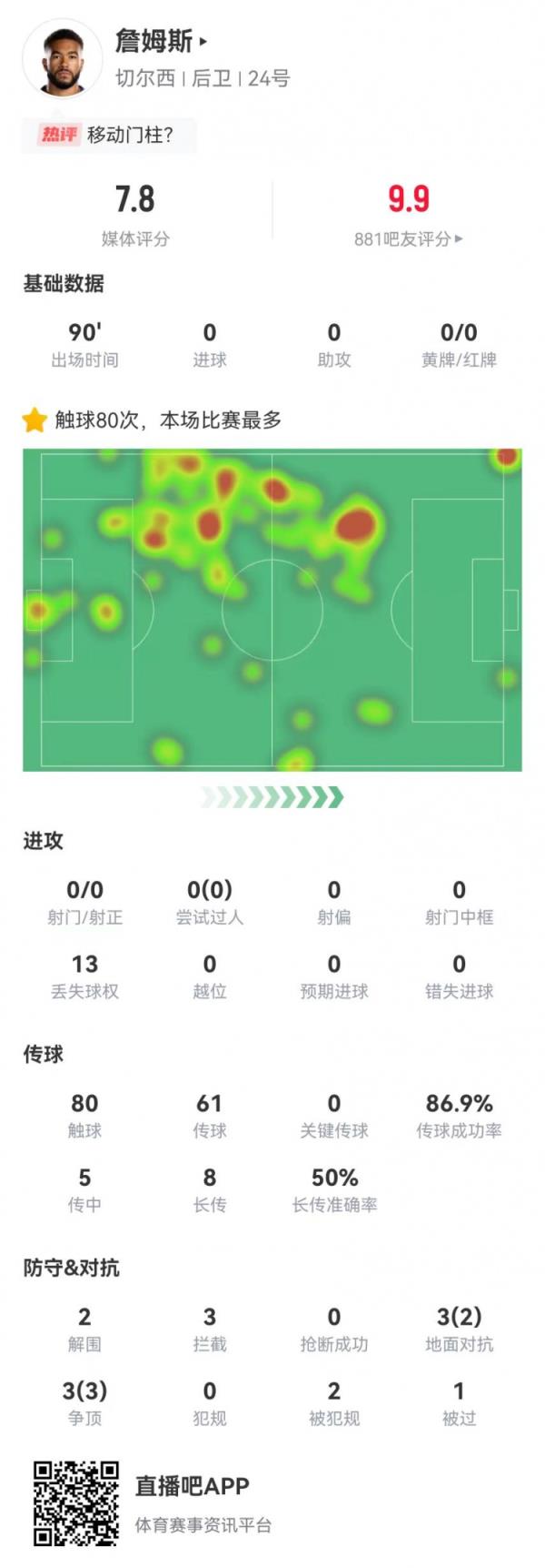 10月28日讯 切尔西在本轮英超2-1力克纽卡,里斯-詹姆斯本场数据如下:
