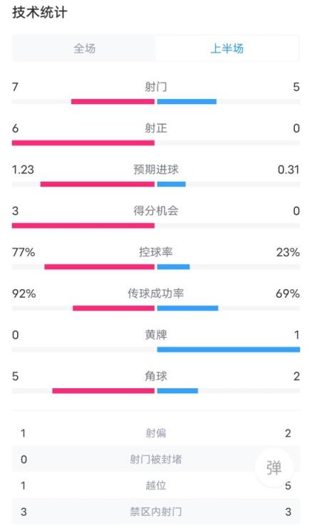 半场比赛数据如下(巴塞罗那在前):