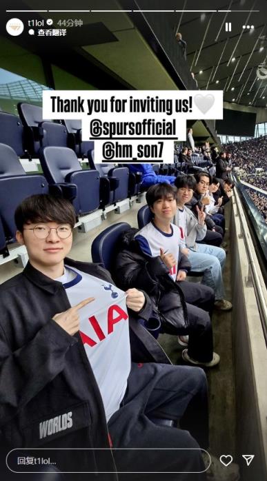 本场比赛,孙兴慜特地邀请在伦敦参加英雄联盟全球总决赛的韩国战队T1现场观战。