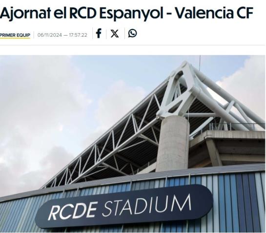 西班牙人原本会于本周日凌晨1点半在主场对阵瓦伦西亚,但由于瓦伦西亚此前遭遇了严重的洪涝灾害,导致了大量人员死亡和大量财产受到损失。因此瓦伦西亚方面提出了推迟比赛的请求,西班牙人俱乐部为表现与瓦伦西亚的团结,愿意满足瓦伦西亚方面提出的任何可能的需求。