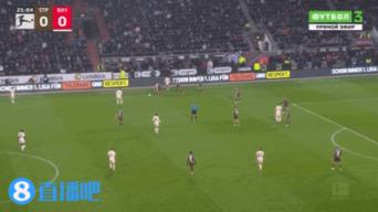 11月10日讯 拜仁1-0圣保利,比赛第22分钟穆西亚拉前场断球,禁区外抬脚轰出无解电梯球。