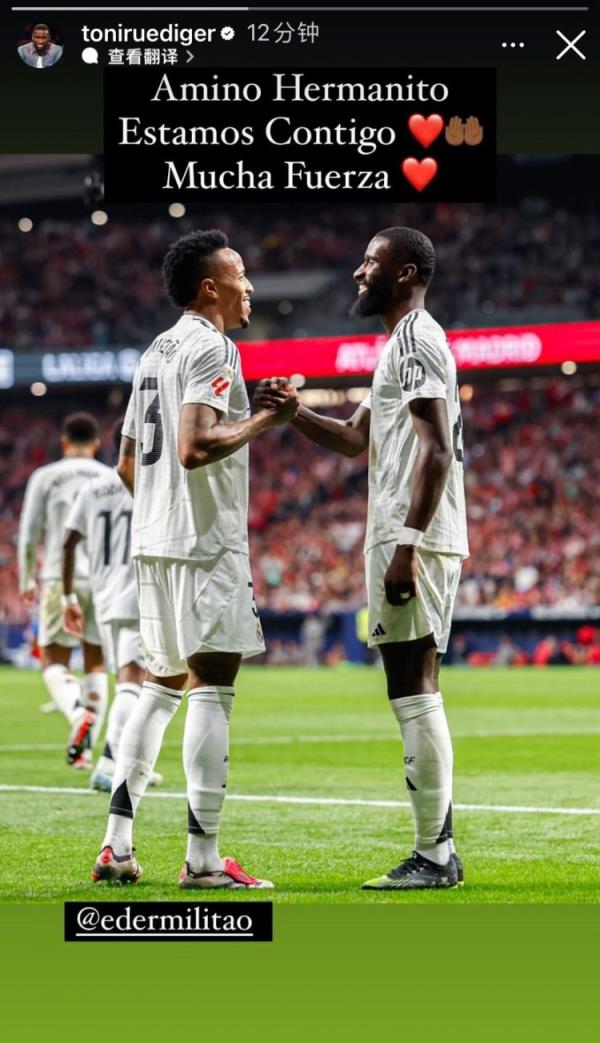 吕迪格写道:我的小兄弟,我们与你同在,坚强起来!❤