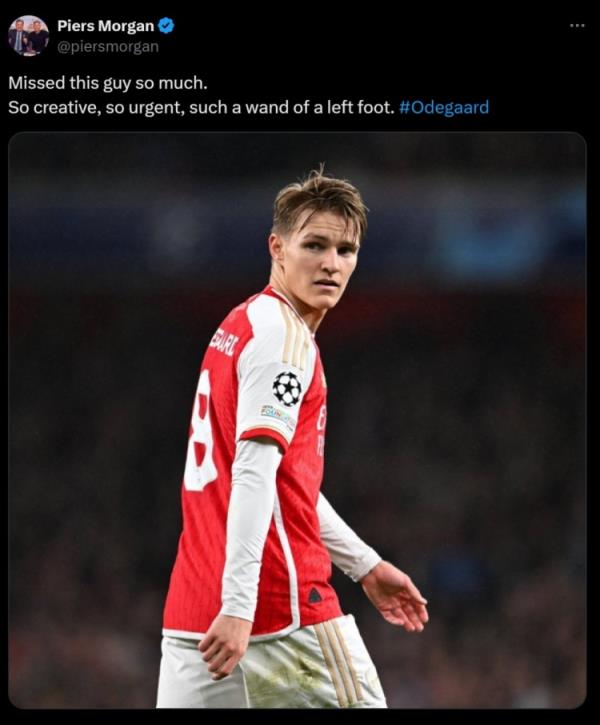 知名枪迷、英国名嘴皮尔斯-摩根也称赞了自家小队长。他写道:“我太想念这个家伙了。非常有创造力,非常积极,他的左脚就像一根魔法棒。”