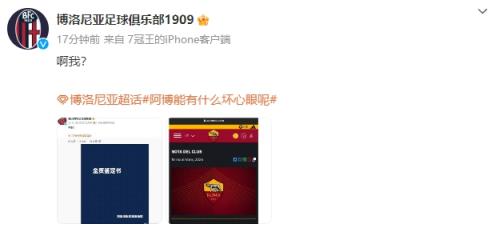 对此,博洛尼亚官微模仿此前西汉姆官微发文:“啊我?”