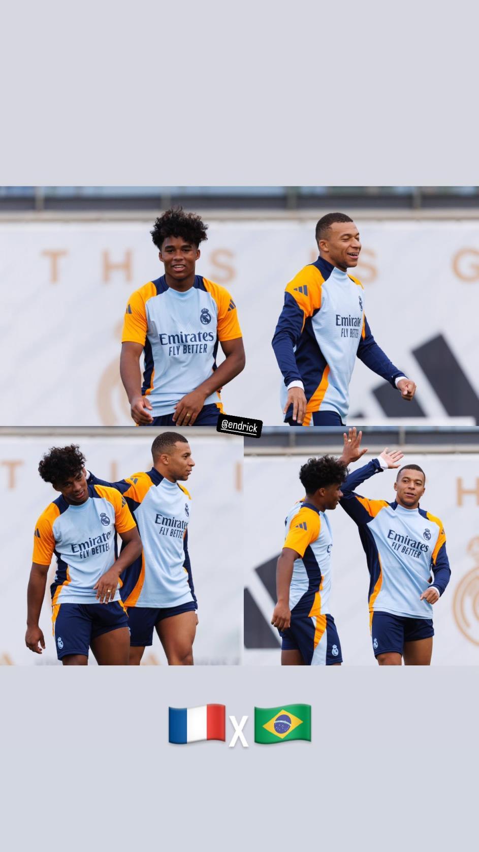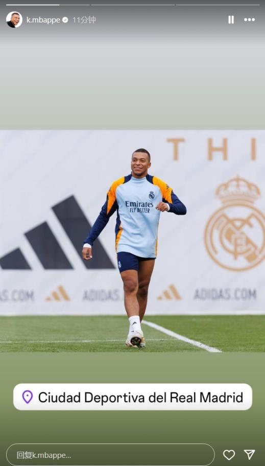 11月13日讯 皇马前锋姆巴佩更新社媒,定位显示位于皇马体育城,姆巴佩与恩德里克一同进行训练。