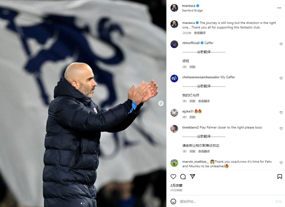 11月14日讯 切尔西主帅马雷斯卡更新个人社媒,晒出执教时的照片并谈及个人感受。