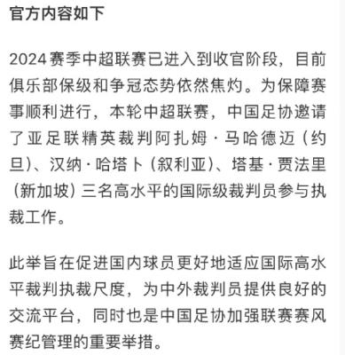 此前中超倒数第2轮安排外籍裁判,本阶段世预赛2场比赛的裁判均在列。