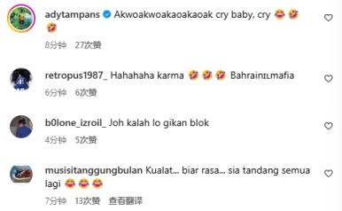 11月15日讯 世预赛18强赛C组第5轮,国足客场1-0绝杀巴林,赛后巴林球迷在足协官方账号下破防,同时本届世预赛结下梁子的印尼球迷也在刷屏嘲讽。