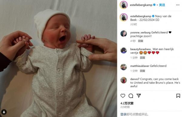 2月25日讯 昨天,范德贝克和妻子Estellee迎来了两人的第二个孩子。