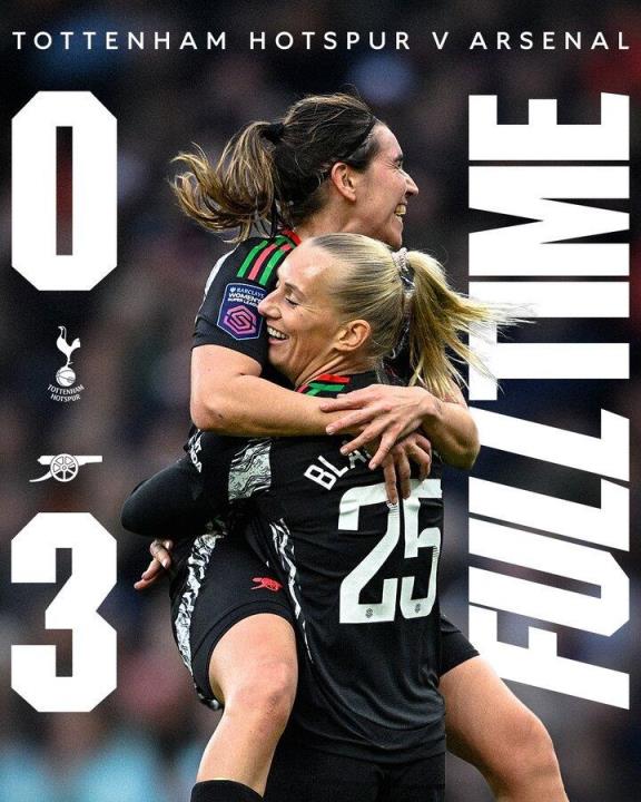 阿森纳女足联赛8轮过后4胜3平1负积15分位列积分榜第4,热刺女足2胜1平5负积7分位列第7。