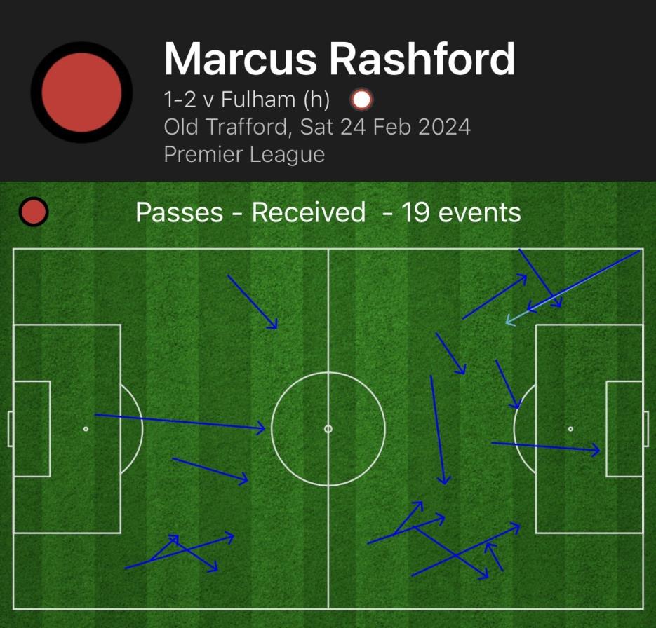 据Statman Dave统计,本场比赛拉什福德获得的支援少之又少。他全场仅接到了队友送出的19脚传球(其中上半场12脚),并且曼联全队为他创造的进球机会数也为0。