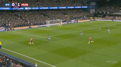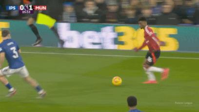 第2分钟,曼联迎来梦幻开局,阿玛德从后场带球过人一路狂奔杀到禁区右侧,横传门前,拉什福德抢在门将出击前捅射破门!曼联1-0伊普斯维奇!曼联迎来新帅上任后第一粒进球!↓