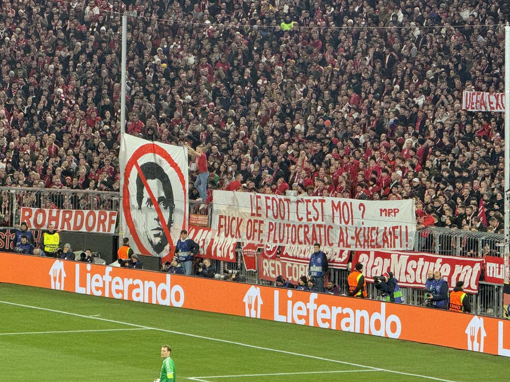 在拜仁欧冠比赛中,安联球场悬挂着针对巴黎圣日耳曼以及其主席纳赛尔的横幅。拜仁的对手以及对手的代表在球场内感受到这种态度和语气的攻击并因此感到被冒犯,拜仁愿意对此深表歉意。