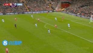 12月02日讯 英超第13轮焦点战,利物浦主场vs曼城,比赛第55分钟,曼城后场传球失误送礼,萨拉赫大单刀打高了。