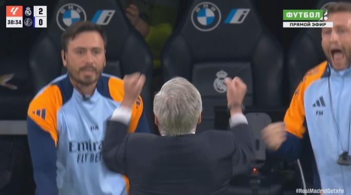 12月01日讯 皇马vs赫塔费第39分钟,姆巴佩接贝林厄姆助攻远射破门,将比分扩大为2-0!镜头给到安切洛蒂,皇马主帅罕见握拳连续振臂庆祝!